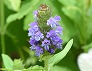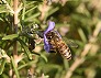 | ローズマリーの花に来たセイヨウミツバチ (つくば市内、2025-04-19 撮影) |
