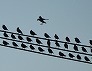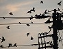 | ねぐらをとる前に集合したムクドリ (つくば市内、2025-07-31 18:40頃 撮影) |