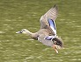 | 飛ぶカルガモ (つくば市内、2025-08-11 撮影) |
