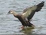 | 着水前のカルガモ (つくば市内、2025-08-22 撮影) |