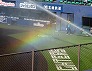 | グラウンド整備の放水 (鎌ヶ谷スタジアム、2025-08-26 撮影) |