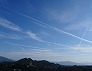 | 幾筋もの飛行機雲が走る空 (中津川市、2025-09-24 撮影) |
