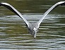 | 着水直前のダイサギ 浮かんでいるのはヒドリガモ (つくば市内、2025-10-10 撮影) |