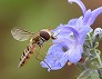 | ローズマリーの花に来たホソヒラタアブ (つくば市内、2025-10-14 撮影) |