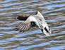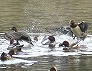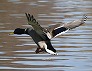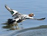 | 水面から飛び上がったヒドリガモ (つくば市内、2025-11-26 撮影) |