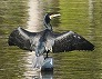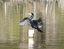 | 翼を広げて乾かすカワウ (つくば市内、2025-10-10 撮影) |
