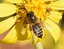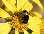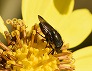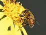 | ツワブキの花に来たニホンミツバチ (つくば市内、2025-11-26 撮影) |