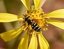 | ツワブキの花に来たオオハナアブ (つくば市内、2025-11-26 撮影) |