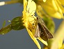 | ツワブキの花に来たフタホシヒラタアブ (つくば市内、2025-11-26 撮影) |