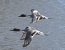 | 何かに驚いて飛び立ったヒドリガモ (つくば市内、2025-02-07 撮影) |